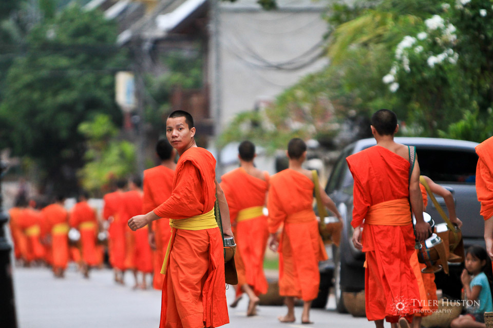 Monks receiving alms, Luang Prabang, Laos.